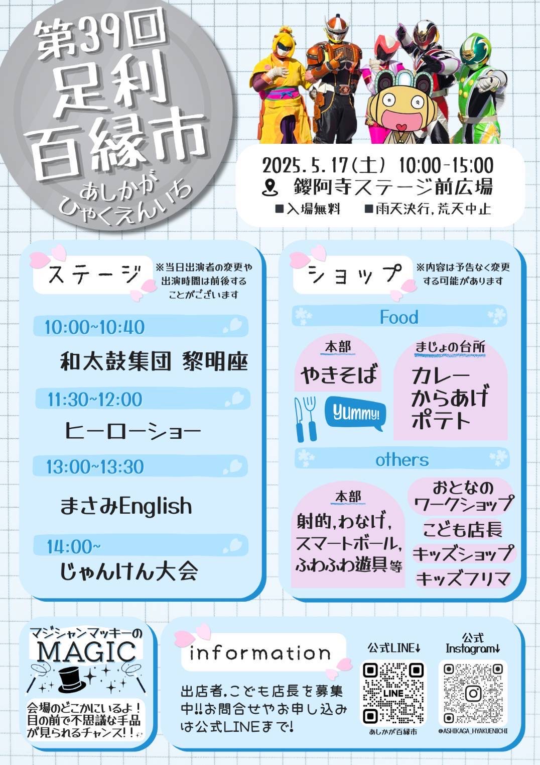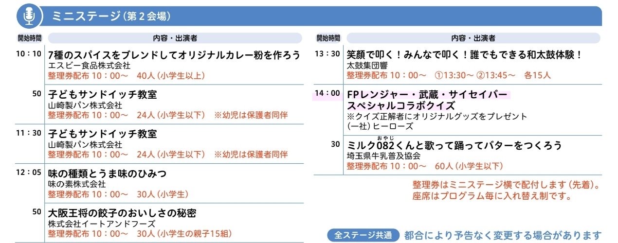 時間:メインステージ10時45分〜/ミニステージ14時〜 ※メインとミニは場所が変わります。