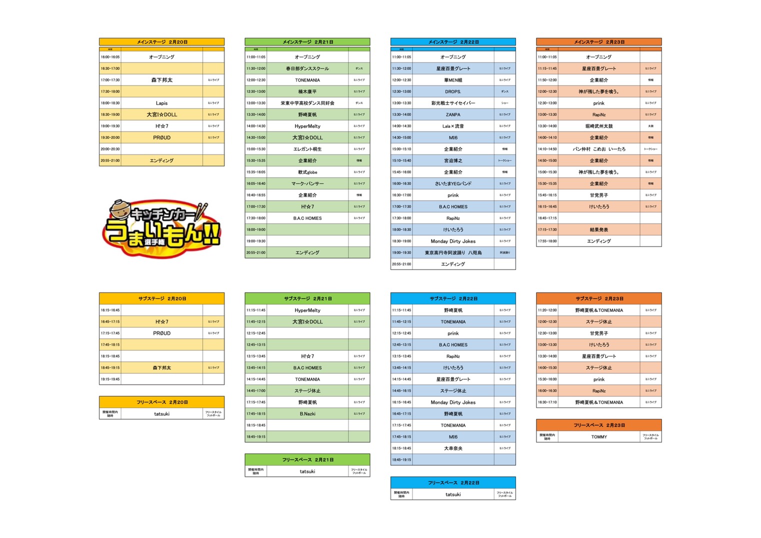 時間:28日:13時?(野外ステージ) 29日:14時?(体育館)